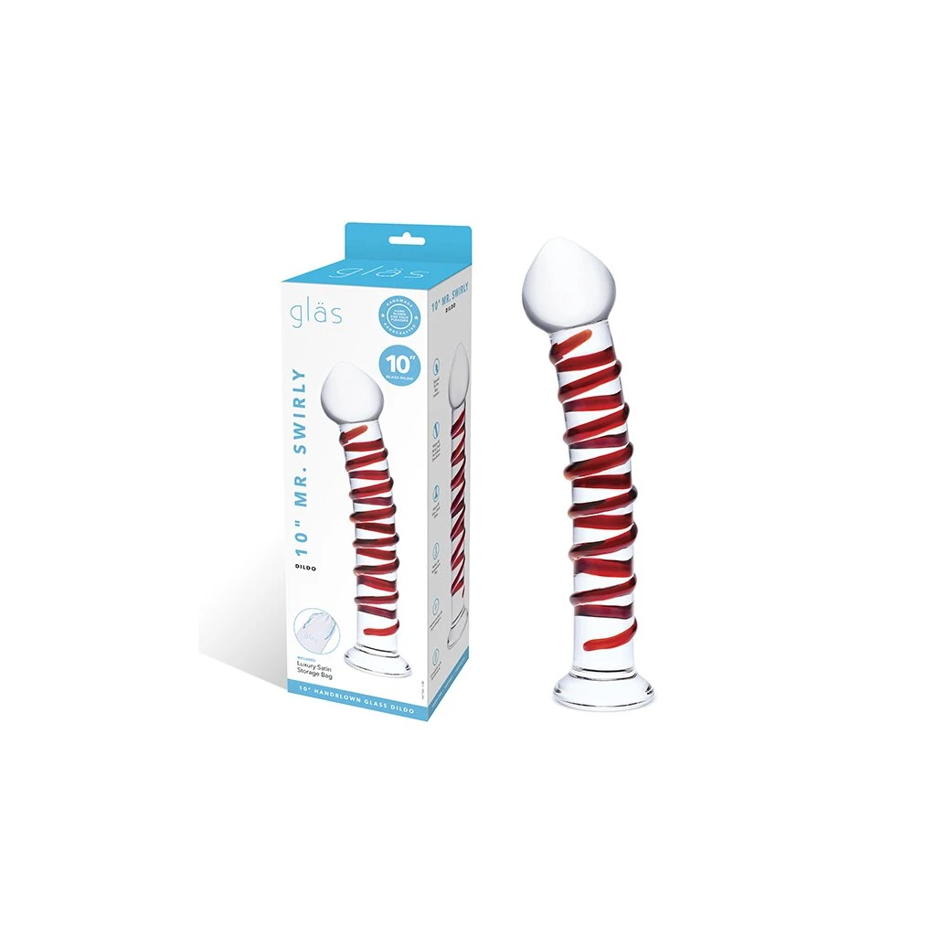Der Gläs 10″ Mr. Swirly Dildo besteht aus hochwertigem Glas und kann auf vielfältige Weise für intensives Vergnügen sorgen – vom vaginalen Vergnügen bis zum analen Vergnügen, von der Stimulation des G-Punkts bis zur Stimulation des P-Punkts. Die leichte Krümmung des Dildos macht ihn perfekt, um sowohl den G-Punkt als auch den P-Punkt zu erreichen. Und das Lustspielzeug verfügt über eine spiralförmige Rippe entlang seines Schafts, die die starken Empfindungen nur noch verstärkt, egal ob er für vaginale oder anale Spiele verwendet wird. Mr. Swirly ist mit seinen zehn Zentimetern selbst für Dildo-Verhältnisse großzügig bemessen – und die Tatsache, dass er so lang ist, macht ihn sowohl beim Solo-Vergnügen als auch beim Vergnügen mit einem Partner einfacher zu handhaben. Der Gläs 10″ Mr. Swirly Dildo kann je nach Vorliebe des Benutzers entweder in Wasser erhitzt oder in Wasser abgekühlt werden, bevor er geschmiert und eingeführt wird – und er ist perfekt für Temperatur- und Sinnesspiele.