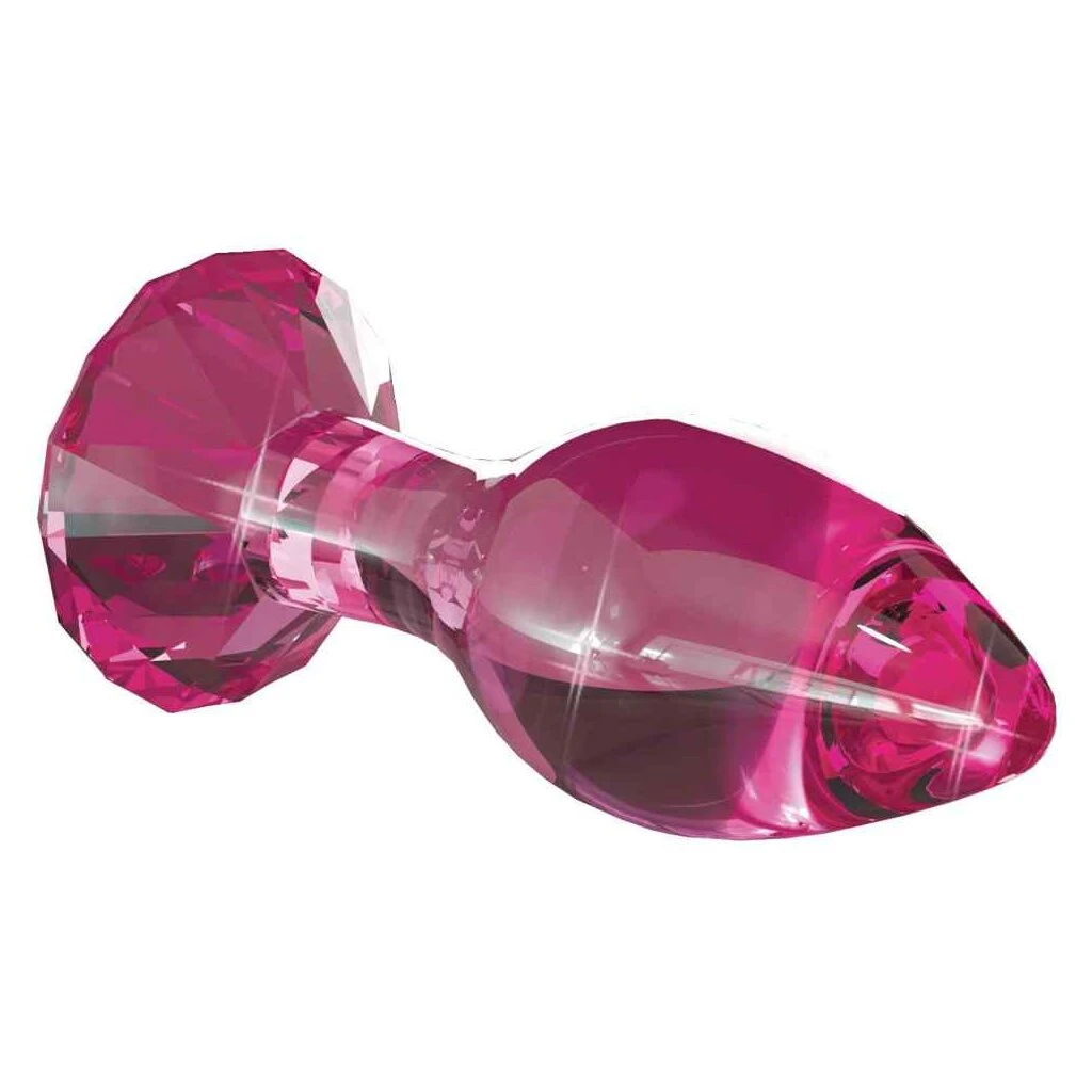 Konisch geformter rosafarbener Analplug aus mundgeblasenem Glas mit Stopper in Form eines Schmucksteins in Diamantoptik. Geruchsneutral, antiallergen und sehr hygienisch, da einfach zu reinigen, sogar in der Spülmaschine. Tipp: Im Wasserbad erwärmt oder im Kühlschrank abgekühlt kann er das Lustgefühl noch zusätzlich steigern. Bei guter Pflege hält der Artikel lebenslang. Gesamtlänge 9 cm, Einführtiefe 6 cm, Ø 3 cm. Material: Glas.