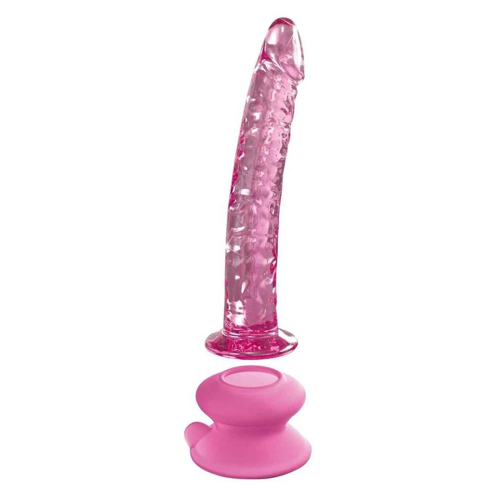 Gesamtlänge 17 cm, Einführlänge 15,5 cm, Ø 3 cm; Saugfuß 4,4 cm hoch, Ø 7 cm. Glas, Silikon.