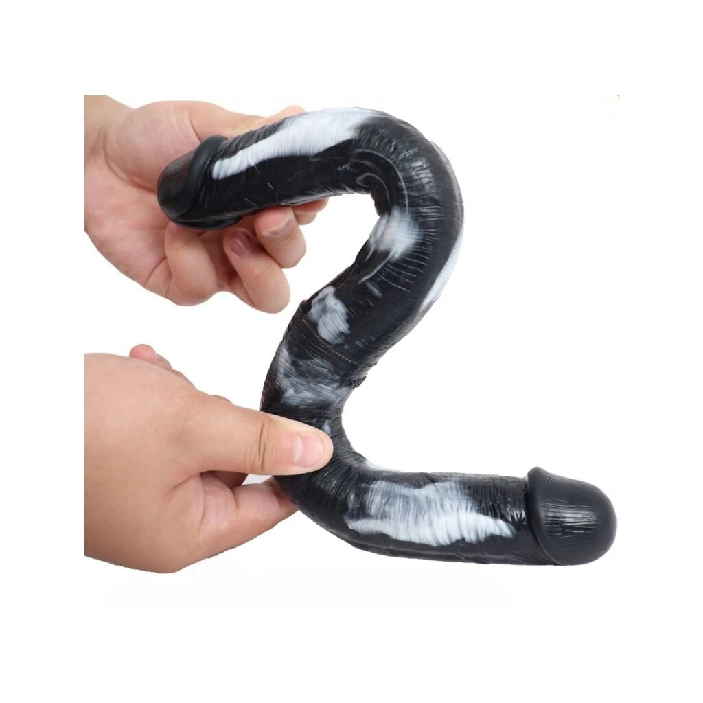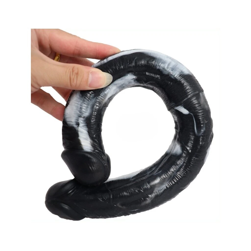 - Der Luuk Double Dildo ist ein Sextoy mit einer weichen Struktur und schwarz-weißer Farbe.