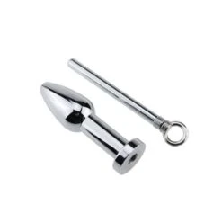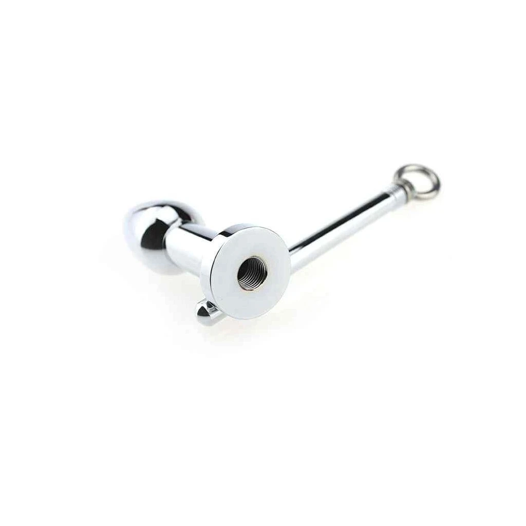 Dies ist ein einzigartiger offener Analstöpsel, der mit einem Verschlussstift versehen ist, der eingeschraubt werden kann, um den Stöpsel fest zu machen.
