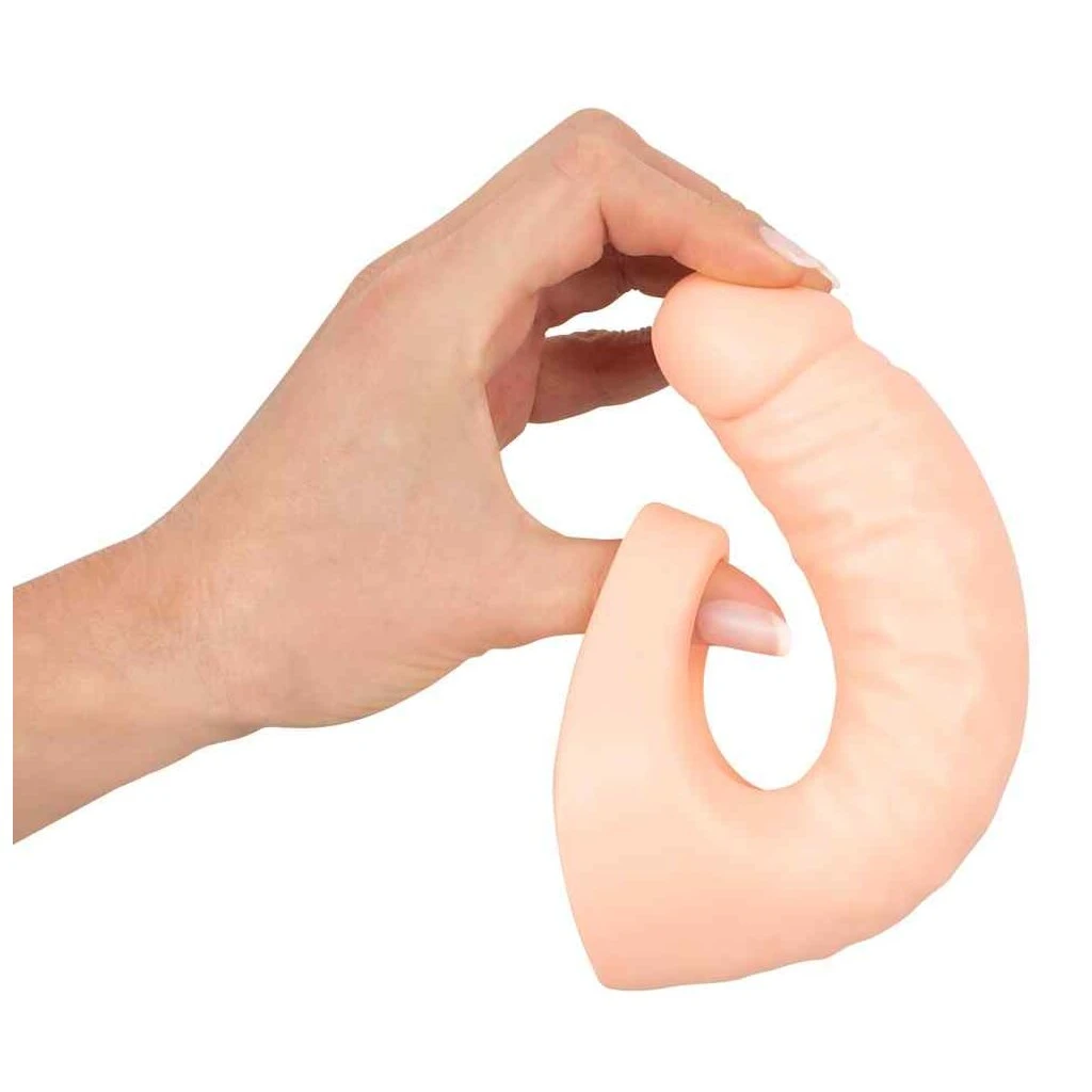 Aus einem Guss: Penis-/Hodenring mit Naturdildo Double Fucker von Realistixxx für ausfüllende doppelvaginale Penetrationen. Der Penis-/Hodenring wird übergestreift, so dass sein Penis optimal in der Dildo-Ausbuchtung liegt – schon ist er mit 2 Penissen ausgestattet, um doppelt zu beglücken! Der dehnbare Penis-/Hodenring sorgt dabei für festen Sitz. Kann auch mit einem Vibrator (nicht beiliegend) und für doppelanale Penetrationen verwendet werden. Der flexible, geschmeidige Naturdildo aus Real Feel-Material sorgt beim Tragen und Verwöhnen für ein sehr angenehmes Hautgefühl.