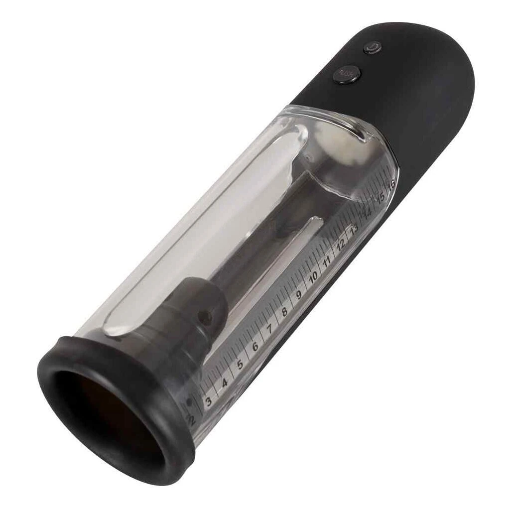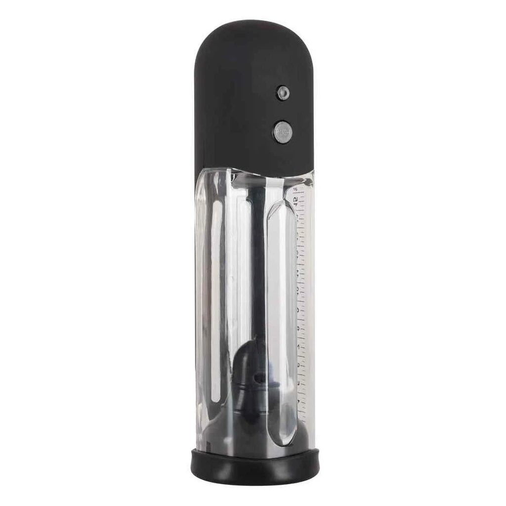 Vollautomatische Penispumpe mit transparentem Zylinder und schwarzem Bedienteil. Für mehr Erektionsstärke und ein effektives Potenztraining. Die Pumpe verwöhnt außerdem mit einem sinnlichen Saugvergnügen. Mit Mess-Skala und intuitiver Bedienung per Knopfdruck. Die Silikonmanschette kann zur Reinigung entnommen werden.