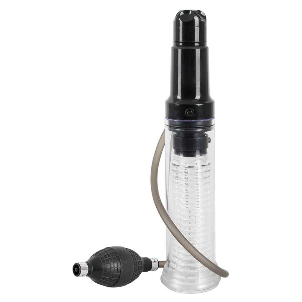 Je nachdem, wie Sie den Pumpball an den Schlauch (49 cm lang) vom Zylinder stecken, wird entweder die Luft herausgesaugt, um den wirkungsvollen Unterdruck fürs Penis-/Potenztraining zu erzeugen oder die Luft strömt ein für den geilen Saugeffekt, der einem Blowjob gleichkommt. Für zusätzliche Reize können Sie auch noch die Eichel-Vibration einschalten, die stufenlos von zart bis hart regelbar ist. Gesamtlänge 33,7 cm. Transparenter Zylinder 17,2 cm tief, Außen-Ø 6 cm, innen mit herausnehmbarer Noppen-Sleeve.